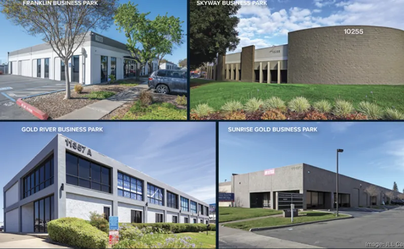 The four properties are: Franklin Business Park, a 158,468-square-foot industrial park. Gold River Business Park, a five-building, 66,970-square-foot park. Skyway Business Park, a three-building, 151,936-square-foot park. Sunrise Gold Business Park, a single-building, 24,624-square-foot property. Occupancy is about 92% across the properties, with more than 140 tenants in an average suite size of about 2,800 square fee.